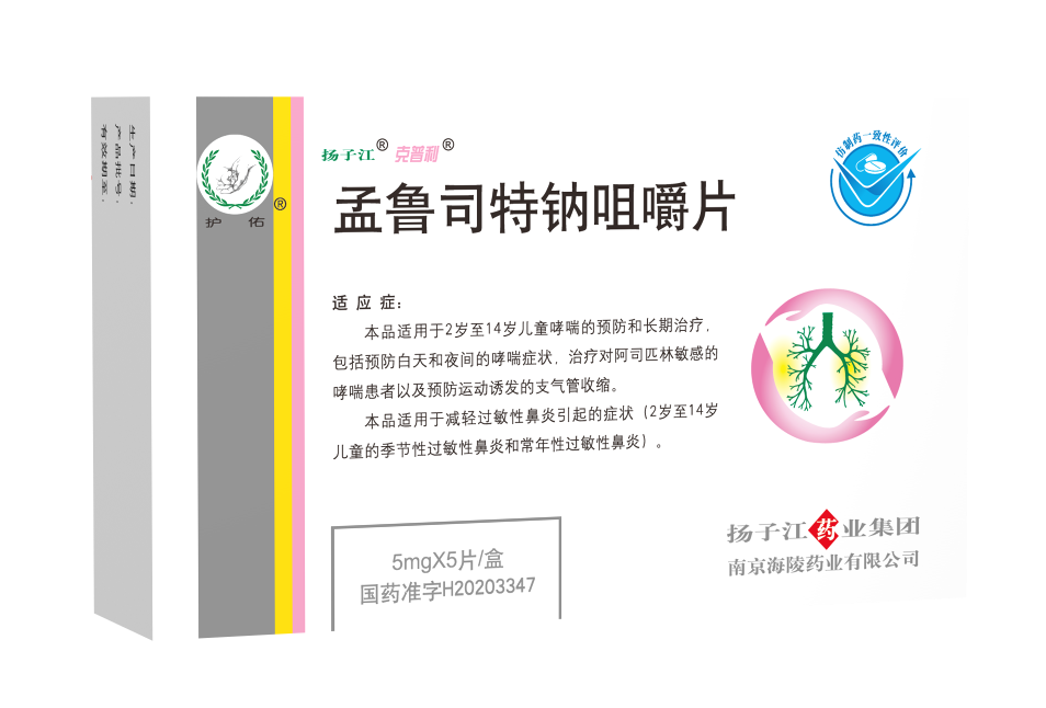 【適應癥】1.2歲至14歲兒童哮喘的預防和長期治療,包括預防白天和夜間的哮喘癥狀,治療對阿司匹林敏感的哮喘患者及預防運動誘發(fā)的支氣管收縮。2.減輕過敏性鼻炎引起的癥狀(2歲至14歲兒童的季節(jié)性過敏性鼻炎和常年性