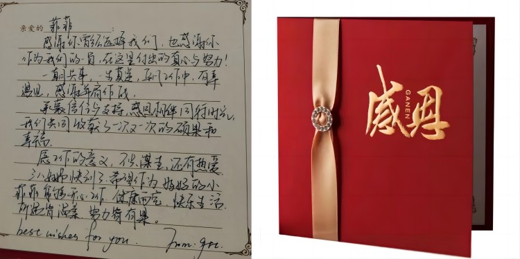 海陵衷心對她們的付出表示感謝,并為其準(zhǔn)備了感恩卡和禮物,直屬領(lǐng)導(dǎo)“驚喜出現(xiàn)”,將手寫感謝卡和禮物交給她們!