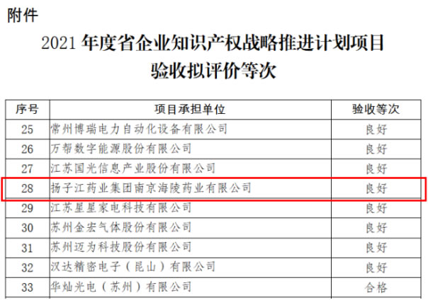 近日,江蘇省知識產權局公示了江蘇省企業(yè)知識產權戰(zhàn)略推進計劃項目驗收擬評價等次名單,南京海陵成功通過項目驗收,為企業(yè)高質量發(fā)展奠定基礎。